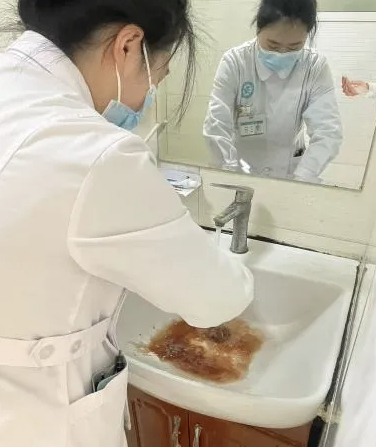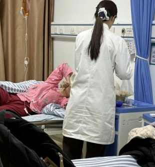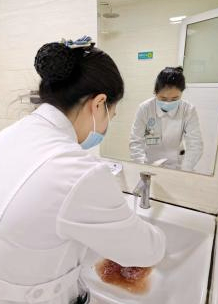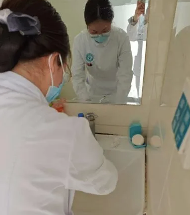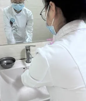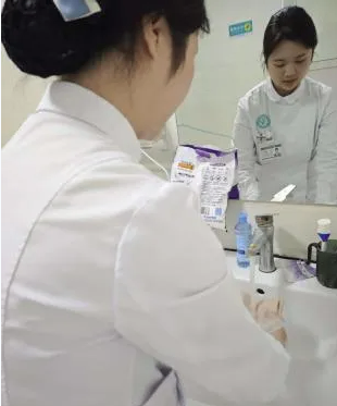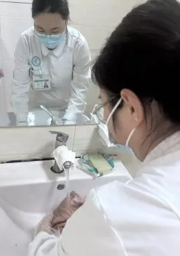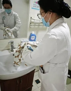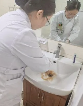 肿一科护士徐忆梦帮助输液不方便的患者清洗纱布垫,忙碌的日子也有感动存在。