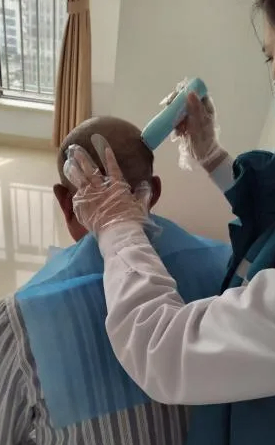 护理不止于治疗与照护,更是用行动传递人文关怀。肿七科护士赵静怡为患者剃去因为用药后遗症而脱落的头发,用专业与贴心守护患者的舒适与尊严。这份藏在日常里的温暖,正是我们“以患者为中心”的最好诠释。