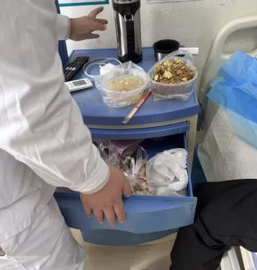 肿七医生于成臻护士赵静怡为腿脚不便的患者拿饭,一餐热饭暖身,一句关怀暖心,愿每一份善意,都能成为患者对抗病痛的力量。