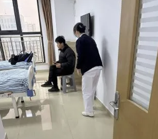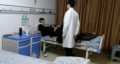 患者因为病情而情绪崩溃,肿八科王腾飞医生,下进病房,在患者床头轻声安慰患者,耐心聆听患者的诉说,让冰冷的治疗多了份温暖的人文温度。