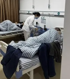 7楼护士李林珍为患者清洗纱布垫,小小举动,温暖患者心灵让冬日有暖,疼痛有伴,康复有期。