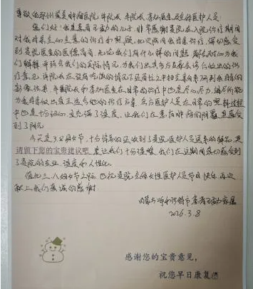 汤圆是甜的,心是暖的。虽然此刻您暂别小家,但这里有我们陪您共度佳节。愿这一碗热气腾腾的汤圆,驱散病痛带来的阴霾,护您周全,盼您安康。元宵快乐,早日康复!”