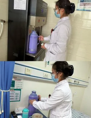 肿二科护士刘毅为远在内蒙古奔赴医院的患者接水 指尖把控的是水温,更是对患者及患者家属无微不至的关怀以及细心体谅!