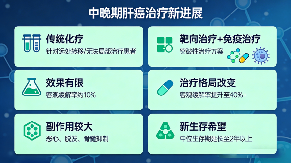 对于已发生远处转移或无法进行局部治疗的中晚期肝癌患者,传统化疗效果有限,且副作用较大。而靶向治疗和免疫治疗的出现,彻底改变了中晚期肝癌的治疗格局,为患者带来了新的生存希望。