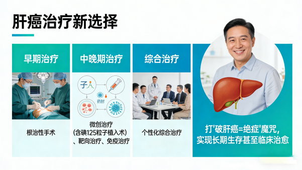 查出肝癌并不意味着绝望,现代医学的发展已经为肝癌患者提供了多种治疗选择,从早期的根治性手术,到中晚期的微创治疗(含碘 125 粒子植入术)、靶向治疗、免疫治疗,再到个性化的综合治疗,越来越多的患者正在打破 “肝癌 = 绝症” 的魔咒,实现长期生存甚至临床治愈。