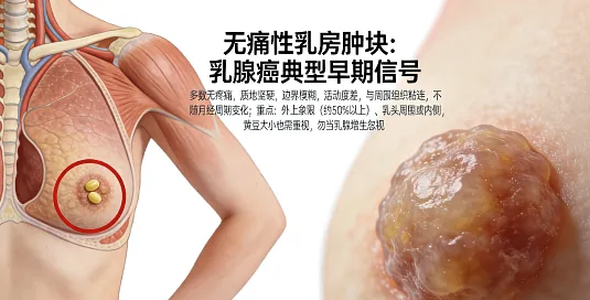 洗澡时摸到乳房有个无痛的硬块,还慢慢长大,皮肤像橘子皮一样,乳头凹陷或流水。这是乳腺癌的典型表现,别觉得“我一把年纪不会得”,绝经后女性风险更高。