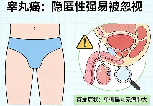 睾丸突然变大,摸起来硬邦邦,却不疼不痒。这是睾丸癌的典型表现,多见于 20-40 岁男性,发现后要立即就医,治愈率很高。