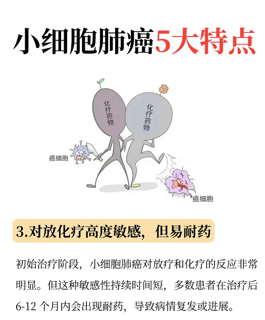 还有小细胞肺癌,它虽然恶性程度高,但对放化疗的反应特别好。局限期的小细胞肺癌,通过同步放化疗,很多患者都能获得长期生存,手术只适合极少数极早期的患者。