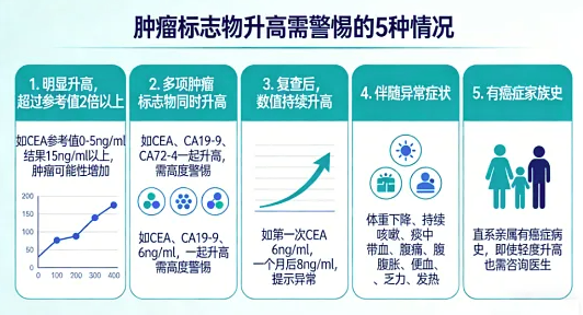 什么是趋势?就是连续两三次复查,指标一次比一次高,而且高得越来越多。比如这次 CEA 是 5,下次是 8,再下次是 12,这种持续性的升高,才需要我们警惕。