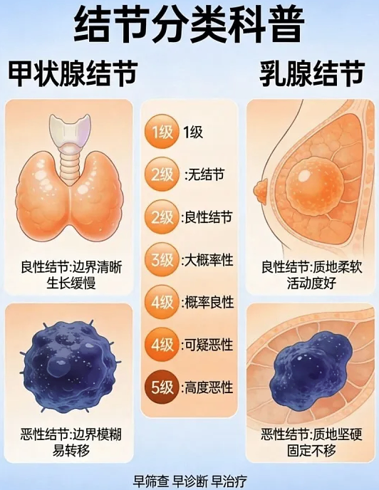 很多人体检都会查出甲状腺、乳腺结节,一看3类就彻底放心,看到4类就彻底慌了。但你要记住,只要报告里出现TI-RADS 4类(甲状腺)、BI-RADS 4类(乳腺),这就是超声医生给你拉响的紧急警报。4类结节的恶性风险最低也有5%,往上走只会越来越高,这个时候别自己瞎琢磨,赶紧找专科医生复诊,该做穿刺活检就做,别把小问题拖成大麻烦。