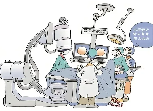 很多人听到 “介入治疗” 觉得高深莫测,其实它的操作特别简单,全程不用开刀。医生只需要在患者大腿根扎一个米粒大小的针眼,插入一根比头发丝粗不了多少的细导管,在 X 光的引导下,顺着血管一路 “导航”,直接开到肿瘤的 “家门口”。