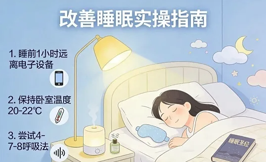 固定睡觉和起床时间,即使周末也别相差超过 1 小时。比如每天晚上 11 点睡,早上 7 点起,形成自己的生物钟。睡前一小时把手机、电脑这些电子设备都放到客厅,蓝光会抑制褪黑素的分泌,让你越玩越精神。白天多晒晒太阳,每天出去走 30 分钟,阳光能帮助调节生物钟,晚上睡得更香。