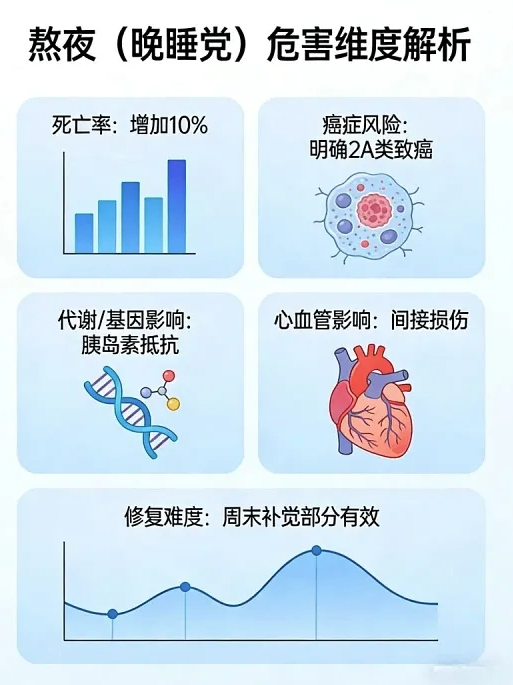 有研究跟踪了一万多国人整整七年,发现每天睡不够 6 小时的人,得癌的风险比睡够的人高出 4 成多,女性更是高出一半还多。更可怕的是,那些晚上睡不够、白天也不补觉的人,患癌风险直接飙升了 82%。